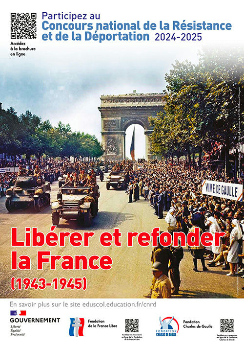 Le concours national de la Résistance et de la Déportation (CNRD) est ouvert aux collégiens de troisième et aux lycéens en France et dans les établissements scolaires français à l'étranger. Il perpétue chez les élèves la mémoire de la Résistance et de la Déportation pour leur permettre de s'en inspirer et d'en tirer des leçons civiques dans leur vie d'aujourd'hui.