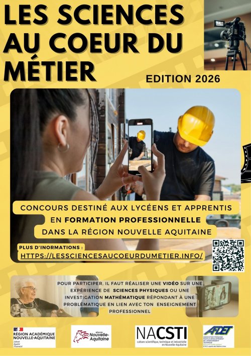 L’édition 2026 des sciences au cœur du métier est ouverte aux 3 académies de la région Nouvelle Aquitaine (académies de Bordeaux, Limoges et Poitiers).