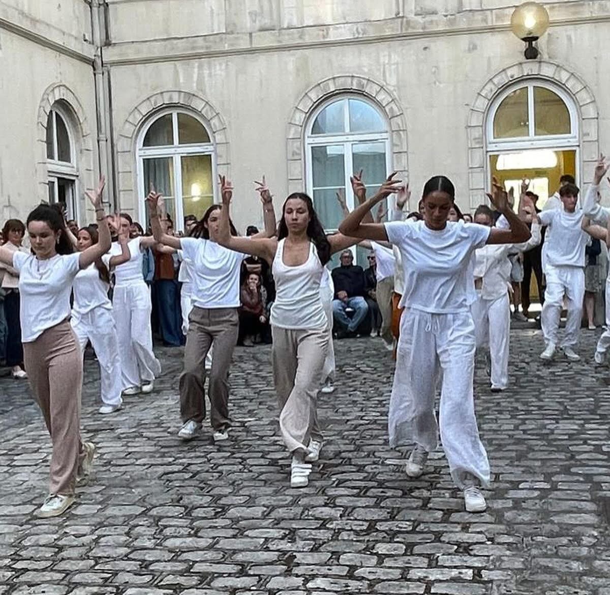 Le Mardi 27 Mai 2025 les élèves de la section art danse du Lycée Dautet à La Rochelle ont convié le public à une "Fête de la Danse". Le public a ainsi pu découvrir ou re-découvrir, à travers une déambulation, avec les danseurs et danseuses, divers lieux extérieurs et intérieurs du lycée. Plusieurs univers de grands chorégraphes ont été traversé et les élèves passant le baccalauréat ont présenté leurs pièces. Un beau moment très touchant car leur professeure Pascale Mayeras, après 44 ans d'un très beau travail auprès des élèves, de cette section et de bien d'autres, au lycée Dautet, partira à la retraite. Elle déclare dans un documentaire réalisé par Mathieu Vouzelaud sur son travail avec les élèves de cette section cette dernière année : "dans cette dernière année d'enseignement il était important pour moi de travailler sur l'engagement. Avec entre autre par ce travail... apprendre à vivre ensemble... aimer la diversité... s'engager sur les arts... La danseuse rochelaise Clémentine Bart a collaboré à ce projet.